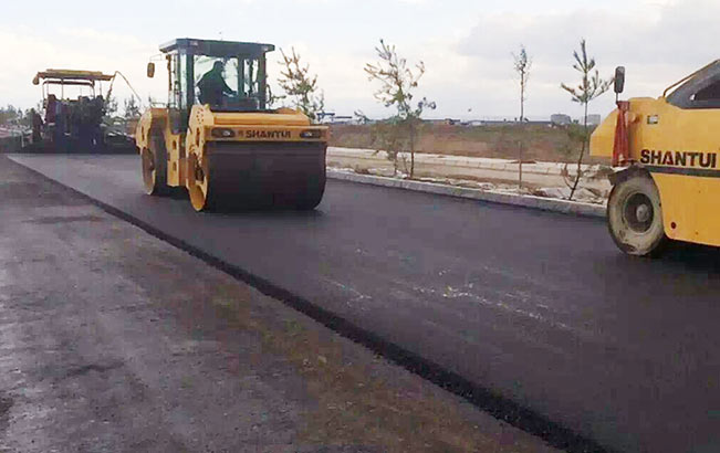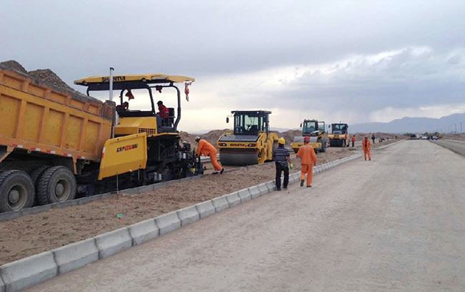 山推成套道路設備在西北地區施工