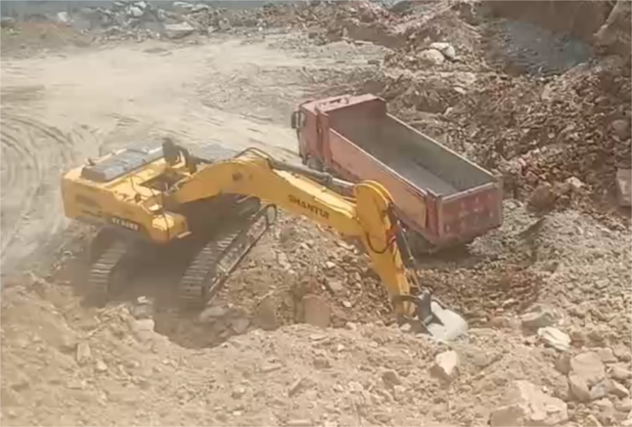 在施工現場,鐵礦石的開采與裝載工作正有序推進。面對礦區日均超20小時的高強度作業需求,項目方采購了5臺山推SE800LC礦用挖掘機,并加裝5方巖石鏟斗,以確保裝載效率。同時,為滿足品位不達標礦石的排巖作業,施工團隊配備了60噸級挖掘機,以保障整個施工流程的順暢推進。
