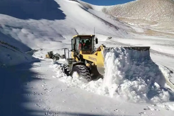 公路籌備組保通人員巡查發(fā)現(xiàn)險情后,立即啟動除雪保通應(yīng)急預(yù)案,積極投入到除雪保通工作中。為確保在最短的時間內(nèi)恢復(fù)道路通行,12名保通人員、5臺裝載機夜以繼日,冒雪夜戰(zhàn),清理積雪30多萬立方米。此次參與公路除雪任務(wù)的山推5噸裝載機,動力強勁,轉(zhuǎn)向靈活,掘起力大,提升力強,滿斗率高,特別適合松散物料的裝載鏟運作業(yè)。歷時30多小時,積雪路段恢復(fù)通行。為進一步提高道路通行能力,保通人員繼續(xù)對該路段進行路面拓寬施工,繼續(xù)奮戰(zhàn)6個多小時,保通工作全面完成。